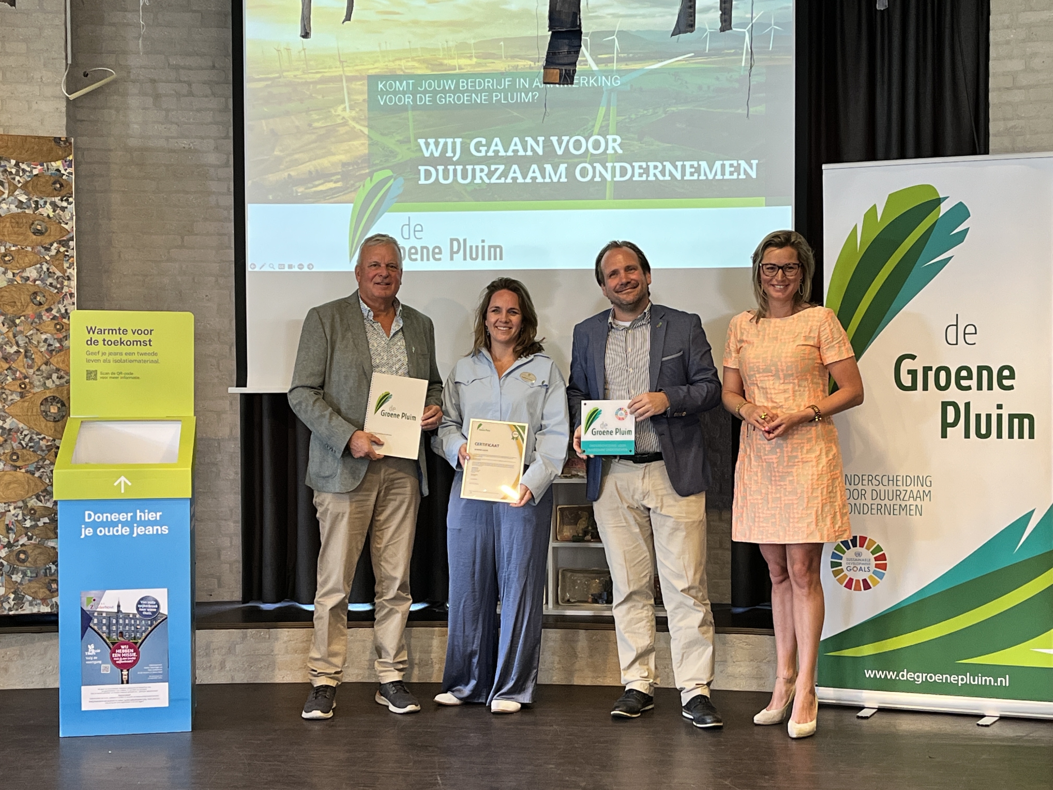 In 2025 mochten we De Groene Pluim in ontvangst nemen. Deze regionale erkenning is bedoeld voor organisaties die vooroplopen in duurzaam ondernemen. Een mooie waardering voor de stappen die we zetten én voor onze ambitie om elke dag een beetje groener te worden.